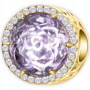 CHARMS ZŁOTY Okrągły Koralik POZŁACANY 585 Fioletowy Kryształ SREBRO 925