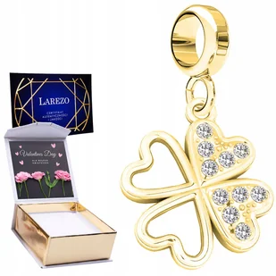 CHARMS ZŁOTY z Czterolistną Koniczyną Kwiat Kwiatek na Szczęście + NADRUK