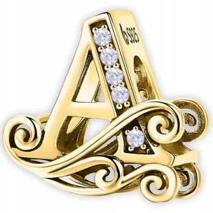 Charms ZŁOTY z Literką POZŁACANY 585 Cyrkonie Inicjał Litera A SREBRO 925