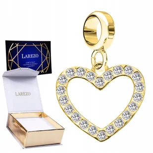 CHARMS ZŁOTY z Sercem Kryształkami Cyrkoniami Lśniące Cyrkonie SREBRO 925