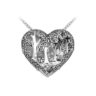Wyjątkowy wisiorek serce nawiązujący do symboliki drzewa życia. Efektowny wisiorek prezentujący drzewa - las, góry Wykonany został ze srebra o najwyższej próbie 925. Doskonała ozdoba dla Pań, które cenią wyjątkową jakość i unikatowość..Niepowtarzalny wisiorek idealny na prezent