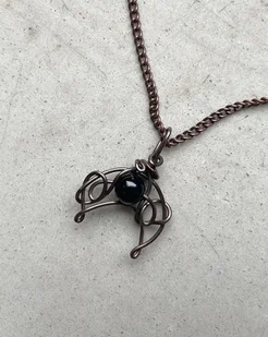 Miedziany wisiorek motyw lunula księżyc czarny turmalin ochrona