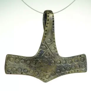 Thor rzucał w swoich wrogów młotem, który zawsze wracał jak bumerang. Talizman nie dopuszcza do nas niebezpieczeństwa, uprzedzał o ataku nieprzyjaciół. Pomaga w walce z przeciwnościami losu, a także z własnymi słabościami. Wymiary: wys. 35mm,szer. 40mm,Wykonany z brązuReplika