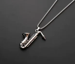 Naszyjnik Saksofon wisiorek Z Saksofonem Instrument srebrny prezent Y2K