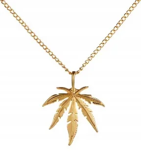 BARDZO ŁADNY NASZYJNIK Z LISTKIEM KONOPI STAN: NOWY KOLOR: ZŁOTY DŁUGOŚĆ ŁAŃCUSZKA: OK. 60 CM WYMIARY ZAWIESZKI: 5x4,2 CM MATERIAŁ: METAL