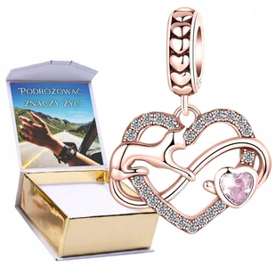 Różowy CHARMS Małe Serce z Cyrkoniami z Kotem Kot Kotek Cyrkonie + NADRUK