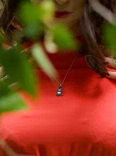 W krainie srebra, gdzie magia metalu spotyka się z tajemnicą, powstała niezwykła zawieszka w kształcie szarego skarabeusza. Wykonana z najczystszego srebra próby 925, ta piękna biżuteria emanuje aurą mistycznego uroku. Zawieszka, o długości 3 cm, została starannie wykończona oksydą w odcieniu głębokiego grafitu, co nadaje jej elegancki, subtelny połysk. Żuczek, którego wymiary wynoszą 2,5 cm na 1,5 cm, przypomina pradawne talizmany, niosąc ze sobą odrobinę magicznego klimatu. Waga 3,5 g sprawia, że jest idealnie wyważona, zarówno subtelna, jak i dostojna.