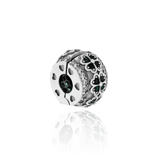 Srebrna zawieszka do bransoletki charms/klips koniczynka pr. 925 Precyzyjnie wykonana srebrna zawieszka charms próby 925. Kamień: Cyrkonia Materiał: Srebro Próba: 925 Wymiary [mm]: