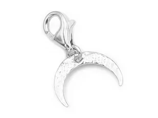 Materiał: srebro pr 925 . Całkowita długość charms: ~18 mm , Szerokość księżyca: 12 mm , Całkowita waga charms: ~0,6 g , Rodzaj zapięcia: karabinek.