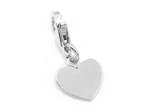 Materiał: Srebro pr 925 , Całkowita długość charmsa: ~19 mm , Wysokość x szerokość serca: 8 x 9 mm , Całkowita waga charmsa: ~0,60 g , Rodzaj zapięcia: karab...