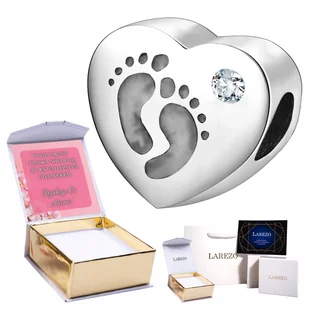 Srebrny Charms Serce Serduszko Stópki Dziecięce Cyrkonia Stopy Stopa NADRUK