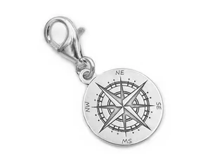 Materiał: Srebro pr 925 , Całkowita długość charmsa: ~25 mm , Średnica x grubość kompasu: 12 x 0,4 mm , Całkowita waga charmsa: ~0,8 g , Rodzaj zapięcia: kar...