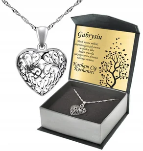 Wisiorek serce z łańcuszkiem i pudełkiem z grawerem ** srebro próby 925 ** Ażurowe serduszko w postaci zawieszki oraz kobiecy łańcuszek o skręconym splocie. ...