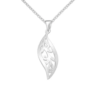 Uroczy wisiorek przedstawiający łezkę z motywem roślinnym. Wykonany został ze srebra o najwyższej próbie 925. Pokryty jest powłoką zabezpieczającą srebro przed matowieniem. Jest bardzo efektowny i cudownie się prezentuje. Doskonała ozdoba dla Pań, które cenią wyjątkową jakość i unikatowość.