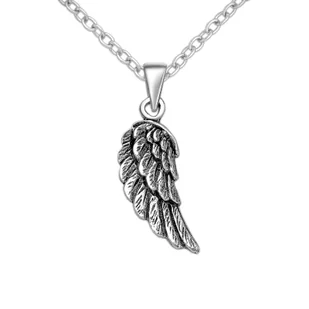 Wyjątkowy wisiorek przedstawiający symbol skrzydeł anioła. Wykonany został z oksydowanego srebra o najwyższej próbie 925. Skrzydła nieodmiennie królują w biżuterii. Niewielkie i delikatne jak u ptaka, błyszczące i potężne niczym atrybut anioła. Pokochały je kobiety na całym świecie i dziś pojawiają się jako element każdego typu biżuterii. Są one jednak nie tylko piękną ozdobą, ale również znanym od tysięcy lat symbolem.