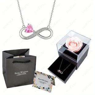 TEMU Naszyjnik z Kamieniem Urodzinowym na Październik dla Kobiet YouCons – Różowe z Pętlą Moibious, Wisiorek z Różowym Pudełkiem i Kartą, Prezent na
