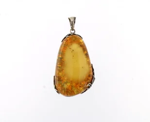 Unikatowy duży srebrny wisior 925 z bursztynem - Prezent na dzień kobiet