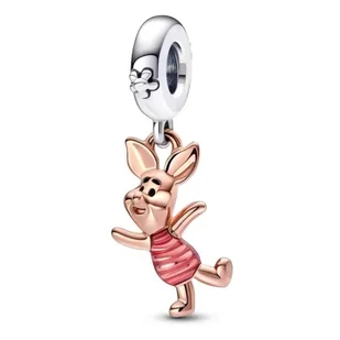 Zawieszka do bransoletki modułowej (srebro 925) Charms "Prosiaczek Kubuś Puchatek" to zawieszka do bransoletki modułowej ze srebra próby 925 w odcieniu różowego złota, przedstawiająca radosnego Prosiaczka w ruchu. Różowa emalia z poziomymi paskami na sweterku, długie uszka i uśmiechnięta buźka przywołują skojarzenia z dzieciństwem, przyjaźnią i ciepłem Stumilowego Lasu. Ten srebrny dodatek inspirowany bajką Disneya pięknie prezentuje się na bransoletce charms i będzie idealnym prezentem dla fanki Kubusia Puchatka, która lubi delikatną, pastelową biżuterię z postaciami z kreskówek. Materiał: srebro próby 925 Wysokość: 27 mm Szerokość: