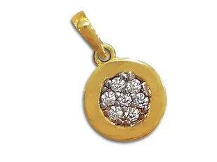 Złota przywieszka w kształcie koła z cyrkoniami. Zawieszka sprzedawana bez łańcuszka. Parametry: Złoto próby: 585 Kolor: żółte złoto Kamień: cyrkonia Wymiary...