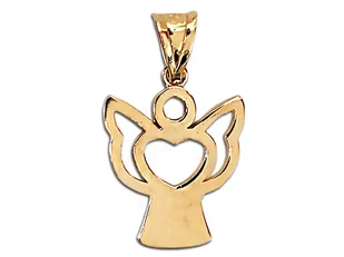 Złota zawieszka aniołek z sercem. Złoto próby: 585 Kolor: Żółte złoto Wymiary: Wysokość ok: 2 cm (w tym koluszko + 5mm) Szerokość ok: 1.1cm Waga: 0,82g Kod p...