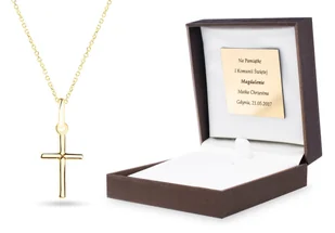 Piękny złoty komplet, naszyjnik z krzyżykiem wykonane z żółtego złota. Biżuteria oferowana przez nas jest najwyższej jakości której jesteśmy producentem. Zdj...