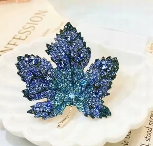 348-Broszka- PRZEPIĘKNY KRYSZTAŁOWY LIŚĆ- NA PREZENT