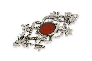Broszka z błyszczącym oczkiem czerwona Elegancka broszka z błyszczącym oczkiem. Wykonana z metalu nieszlachetnego w kolorze antycznego srebra. Posiada mocne zapięcie na agrafkę. ✔ Produkt jest dostępny ✔ Polska marka ✔ Fabryczne opakowanie Informacje Marka: Jubileo Kraj produkcji: