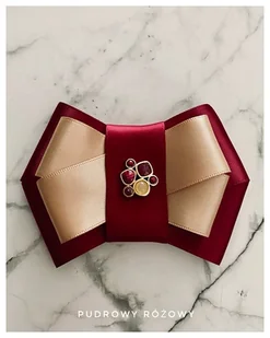 NOWA KOLEKCJA BURGUND To kolekcja w najmodniejszym tego sezonu kolorze burgundowym i szlachetnym beżowym. Broszka wykonana z wysokiej jakości taśm i dodatków. Piękna dekoracyjna ozdoba na środku w soczy ...