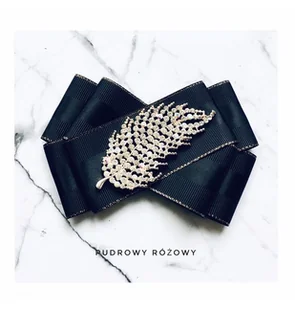 Broszka wykonana z wysokiej jakości taśm i dodatków. Brosza w kolorze czerni. Wstążki wykończone delikatną złotą nicią. Klasa sama w sobie. Na środku naszyta ogromna ozdoba dekoracyjna Przepiękny liść w kolo ...