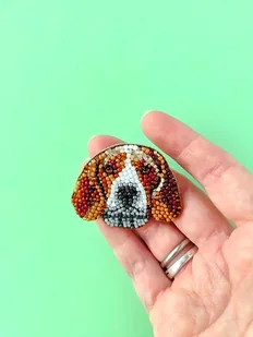Beagle to pies radosny, towarzyski i bardzo uroczy – i właśnie taki jest na tej broszce! Została w całości wyszyta ręcznie - koralik po koraliku - z dbałością o każdy szczegół. To idealna broszka dla miłośniczek p ...