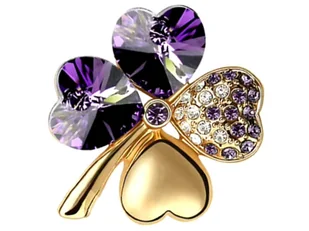 Broszka koniczynka z fioletowych serc śliwkowe cyrkonie przywieszka koniczyna