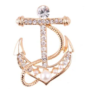 Broszka ozdobna kotwica z kryształkami i perłami Broszka ozdobna kotwica z kryształkami i perłami Broszka z kotwicą ze strasu, z kryształami i dużymi perłami Ręcznie wykonana broszka w kształcie kotwicy, która łączy w sobie elegancję i styl marynistyczny. Broszka ozdobiona jest delikatnymi cyrkoniami, które dodają blasku i przyciągają uwagę, a duże perły nadają jej wyrafinowanego wyglądu. Wykonana z trwałego stopu, całość pokryta została złotem, co podkreśla luksusowy charakter biżuterii. To idealny dodatek do codziennych stylizacji, jak i na wyjątkowe okazje, dla osób ceniących sobie elegancję i oryginalne wzory. Specyfikacja: