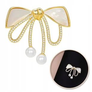 Broszka ozdobna złota KOKARDKA masa perłowa i cyrkonie BZ197 Elegancka broszka z kryształkami Świetnie pasuje do eleganckich, jak również do codziennych styl...