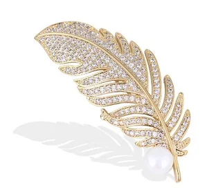 Broszka Pióro perła cyrkonie piękna złota Broszka Pióro perła cyrkonie piękna złota BROSZKA PIÓRO PERŁA CYRKONIE PIĘKNA ZŁOTA ✔️ Elegancki piórko w kolorze złotym z akrylową perłą. Wysadzana przezroczystymi cyrkoniami. ✔️ Broszki dają się nosić na wiele różnych sposobów, przypinane do swetrów, bluzek, żakietów, płaszczy, a także do czapek, apaszek, szali i torebek! Można je zestawiać z innymi broszkami i tworzyć bogate stroje w pięknym stylu. W naszej ofercie dostępnych jest wiele broszek w różnych wzorach i kolorach, także w stylu retro. ✔️ Dobry pomysł na prezent dla odważnej kobiety lubiącej wyrazistą, kolorową biżuterię.
