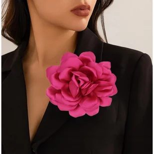 BROSZKA PRZYPINKA RÓŻA DUŻA KWIAT ELEGANCKA FUKSJA DO MARYNARKI 13 CM