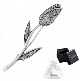 Broszka srebro pr. 925 Elegancka Oksydowana Brosza Tulipan z Cyrkoniami Elegancka broszka w formie tulipana wykonana ze srebra próby 925, ozdobiona lśniącymi cyrkoniami. Precyzyjnie osadzone kamienie pokrywają kwiat oraz liście, dodając blasku i wyrafinowanego charakteru. Subtelny kontrast między połyskiem srebra a mieniącymi się cyrkoniami sprawia, że broszka przyciąga wzrok i stanowi wyjątkową ozdobę każdej stylizacji. Idealna na prezent dla miłośniczek klasycznej i kwiatowej biżuterii.