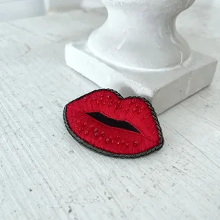 Broszka USTA 1 ręcznie haftowana przypinka koraliki