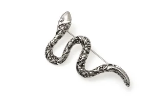 Broszka Wąż styl rockowy Broszka w kształcie jadowitego węża. Wykonana z metalu w kolorze starego srebra. Bogato inkrustowana. Zapięcie na mocną agrafkę. ✔ P...