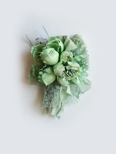 Broszka z jedwabnymi kwiatami w odcieniach mięty