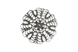 Broszka z Kwiatem ażurowa Wykonana z metalu nieszlachetnego. Powierzchnia koloru antycznego srebra. Mocne i trwałe zapięcie. ✔ Produkt jest dostępny ✔ Polska...