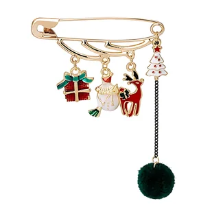 Broszka Złota Świąteczna Agrafka z Zawieszkami na Prezent Święta Mikołajki