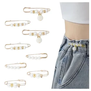 Broszka Złota Zestaw 8 Sztuk z Koralikami Ozdobna Agrafka Lekka Elegancka