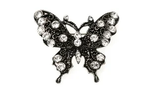 Broszka Motyl Retro z cyrkoniami Cudowna broszka w kształcie motyla ozdobiona błyszczącymi cyrkoniami. Wykonana z metalu koloru postarzonego srebra, zapinana na agrafkę. Idealna na imprezę i na codzień jako efektowny dodatek w stylu retro. ✔ Produkt jest dostępny ✔ Polska marka ✔ Fabryczne opakowanie Informacje Marka: Jubileo Kraj produkcji: