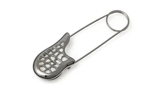 Broszka Agrafka nowoczesny styl Ażurowa broszka w postaci dużej agrafki. Wykonana z metalu w kolorze hematytowym. Mocne zapięcie. ✔ Produkt jest dostępny ✔ Polska marka ✔ Fabryczne opakowanie Informacje Marka: Jubileo Kraj produkcji: