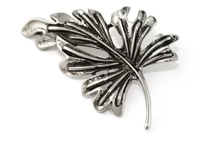 Broszka jesienny liść retro Oryginalna broszka damska w postaci srebrnego liścia w stylu retro. Wykonana z polerowanego metalu koloru antycznego srebra. Osadzona na mocnej sprężynującej szpilce z agrafką. ✔ Produkt jest dostępny ✔ Polska marka ✔ Fabryczne opakowanie Informacje Marka: Jubileo Kraj produkcji: