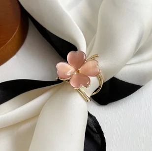 klamra służy do wiązania apaszki, chusty, szala a nawet bluzki, na różne ciekawe sposoby, - wykonanie: klamra w kształcie czterolistnej koniczynki, wykonana z wysokiej jakości materiałów w kolorze złotym i różowym, trwała, elegancka i solidnie wykonana, - styl: sprawdzi się zarówno w stylu eleganckim, jak i casualowym, w zależności od charakteru jakiego chcemy dodać stylizacji przez konkretne dodatki typu apaszka, chusta, szal itp. , - idealna na wieczorne wyjścia, randki, eleganckie spotkania biznesowe; świetnie się sprawdzi jako dodatek do stroju do pracy, jak i na spotkanie towarzyskie, - specyfikacja: