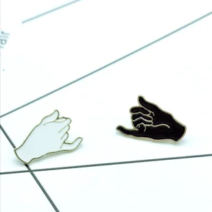 Cechy produktu Komplet przypinek do odzieży Z motywem dwóch dłoni Kolor złoty Materiał: stal Dwa warianty w komplecie - kolor czarny i biały
