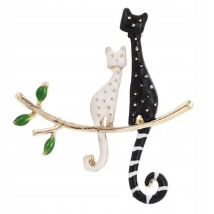 PINETS broszka czarny i biały KOT kolor złoty KOTY