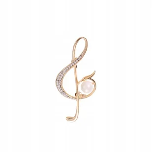 PINETS Broszka złoty Klucz wiolinowy z cyrkoniami