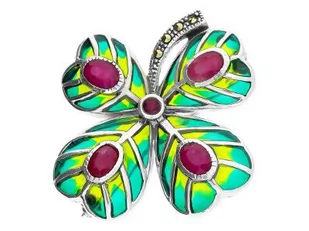 Srebrna broszka 925 koniczynka z kolorowymi kamieniami